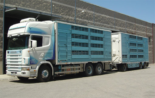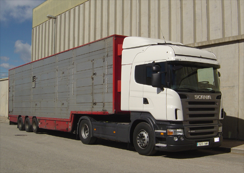 ![]() Tractora Scania 480 cv. 124 m2 superfície de càrrega am 4 pisos |